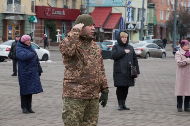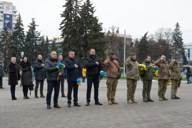 Разом із представниками обласної влади та військовослужбовцями міський голова взяв участь у церемонії покладання квітів до пам’ятного фотостенду «Герої Небесної Сотні – Загинули за Єдність України».