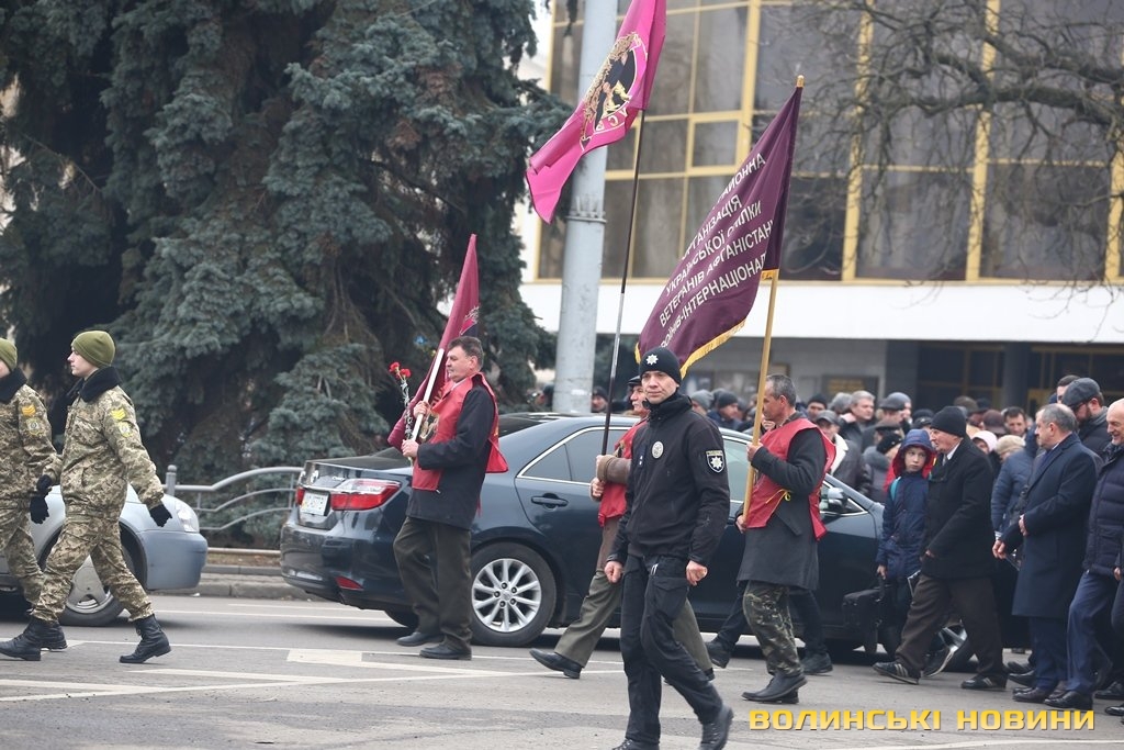 Також сьогодні, 15 лютого, відбулася урочиста хода. Так, ветерани Афганістану разом із небайдужими лучанами та владцями під звуки патріотичних маршів військового оркестру рухались за маршрутом: Театральний майдан – вулиця Винниченка – проспект Василя Мойсея. На чолі урочистої ходи, що стартувала з Театрального майдану, курсував бронетранспортер. Учасники ходи завершили захід спільним покладанням квітів до монументу загиблим воїнам-афганцям на території меморіального комплексу та до пам'ятника волинським Героям Небесної Сотні.