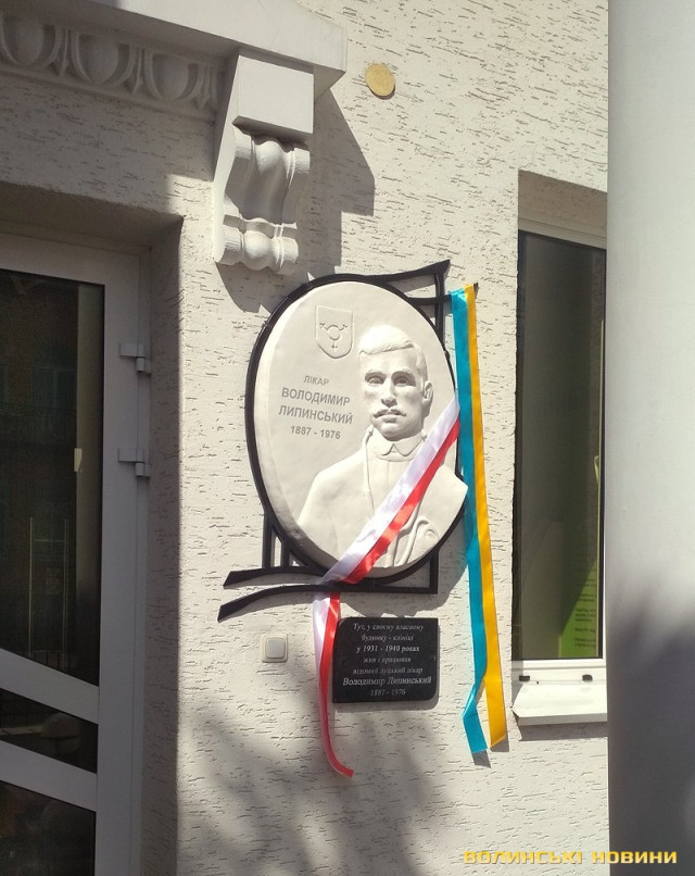 У Луцьку встановили меморіальну дошку лікарю Володимиру Липинському на фасаді будівлі, де він жив та працював.