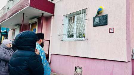 На відкритті та освяченні меморіальної дошки були присутні рідні та сусіди військовослужбовця.