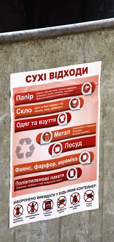 Власне я не проти такого сортування, постає лише одне питання - де мені в хрущовці взяти місце на 10 відер в які я буду це все сортувати? За пляшки я згоден і навіть викидаю їх в окремо встановлений контейнер, але інше... Рештки їжі, органічні відходи ... і раптом засоби гігієни! Що мали на увазі? Прокладки, тампакси, памперси? Так це ж не сумісні речі. А куди викидати те що написано що заборонено кидати в будь-який контейнер? Сміття після миючого пилососа під міськраду приносити, воно ніби не підпадає під зазаначений перелік?