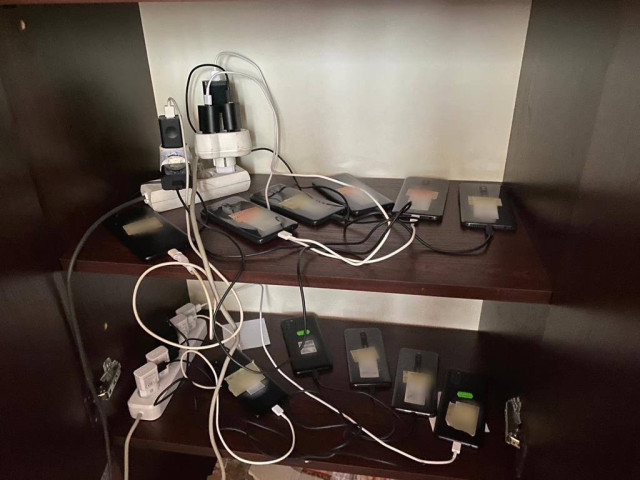 Під час санкціонованих обшуків за місцем проживання та перебування причетних до протиправної діяльності правоохоронці виявили та вилучили близько 30 мобільних терміналів, понад 100 сім-карток іноземних операторів стільникового зв’язку, чорнові записи.
