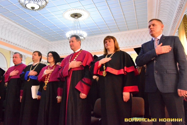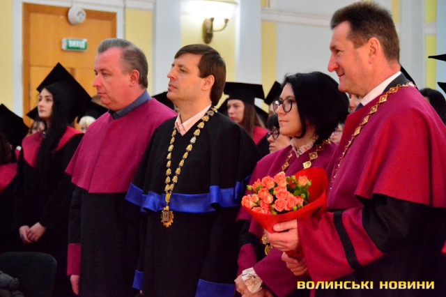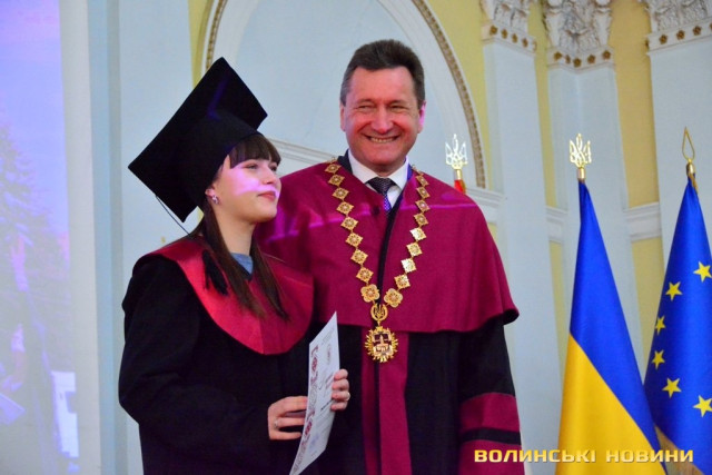 Випускників вітало керівництво університету та їхні викладачі.Ректор ВНУ Анатолій Цьось у вітальному слові для випускників найбільшого університету Волині відзначив, що хоча рік був складним, водночас він був яскравим.