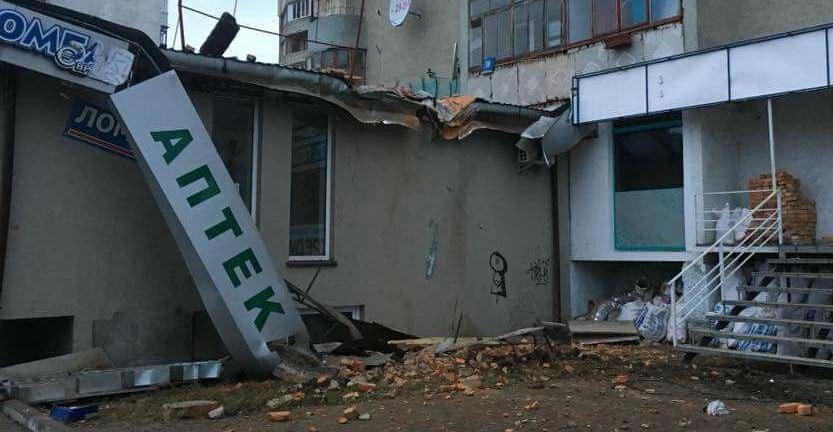 Це не вивіска обвалилась. Це обвалився шматок багатоповерхівки, який розтрощив дах споруди поруч і зніс вивіску...