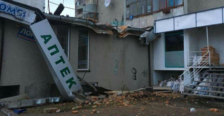P. S. Згодом муніципали, як першими взялися розбирати завали, повідомили, що на вивіску впав шматок даху багатоповерхівки. Причиною завалу назвали сильний вітер, який може знести і ще одну арку. При цьому аптека, поблизу якої у Луцьку обвалився фронтон даху багатоповерхівки, працює у звичному режимі.