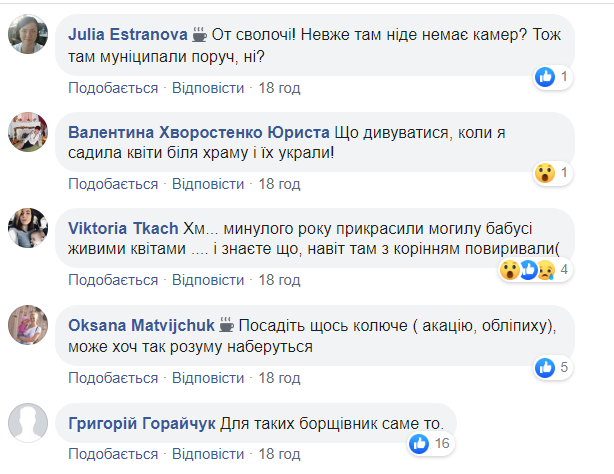 «Я взагалі-то дуже терпляча та стримана особа, але терпіти це б*****во вже немає сили... Про яке облагородження міста може йти мова, коли я вже вп'яте саджу в клумби зелені насадження і їх так само вп'яте видирають з корінням.