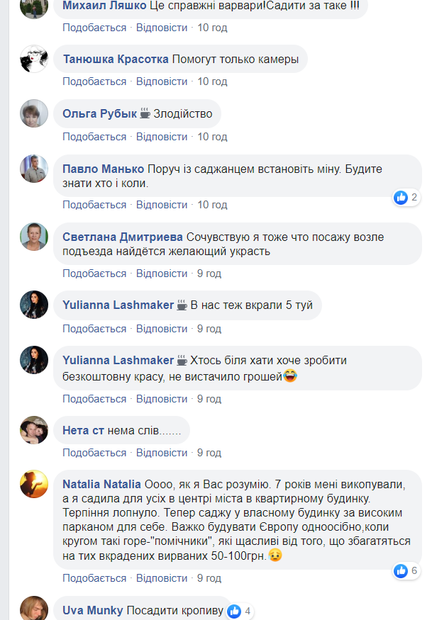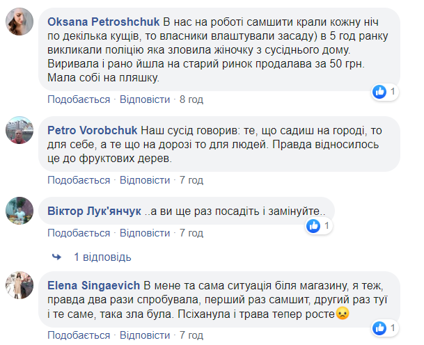 Водночас чимало лучан поскаржилися, що у них теж масово крадуть або просто нищать туї, самшит та будь-які інші рослини.