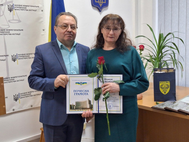 Звертаючись до присутніх, Ірина Чебелюк подякувала усім за роботу та вручила кращим працівникам відзнаки.«Без працівників виконавчої служби, тих, хто буде виконувати рішення суду, правова система буде недієздатною. Ви ставитесь відповідально до своєї роботи і намагаєтесь досягти максимальних результатів. І ваші зусилля оцінені на найвищому рівні. Дякую кожному з вас за успішну роботу», – звернувся до працівників Григорій Пустовіт.Він відзначив почесними грамоти обласної ради трьох працівників державної виконавчої служби – Ольгу Наумчук, Мирославу Вавренюк та Людмилу Бурбенко.