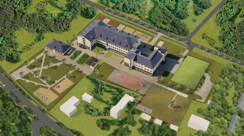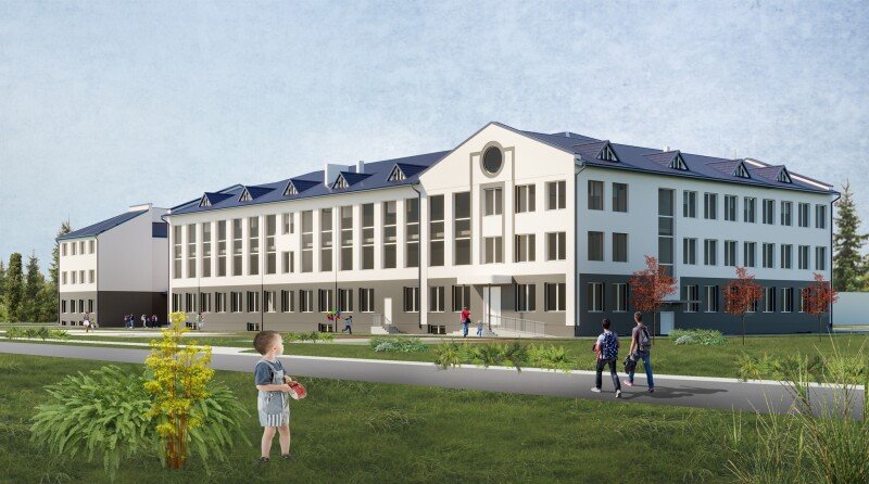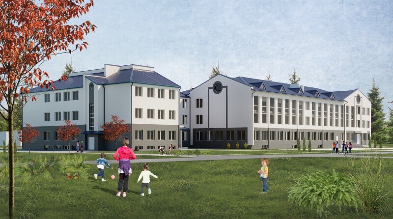 – добудову 3-поверхової будівлі з підвальним поверхом (укриттям). Перехід від існуючої частини школи дo добудови передбачено по всіх поверхах. Там начатимуться діти 1-4 класів. Проєктна потужність об’єкту: ~442 особи.