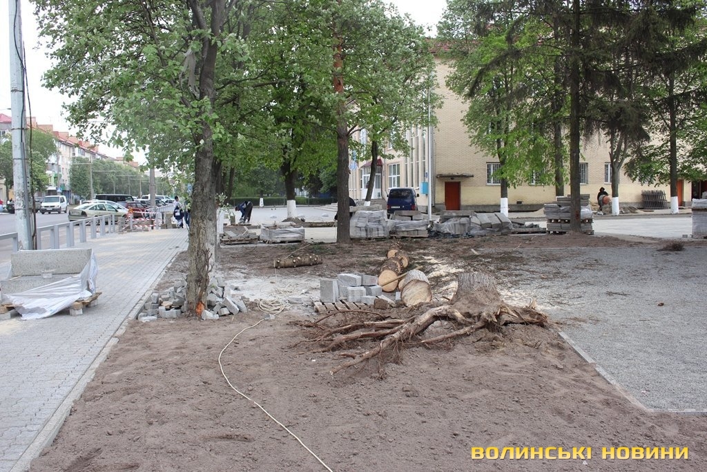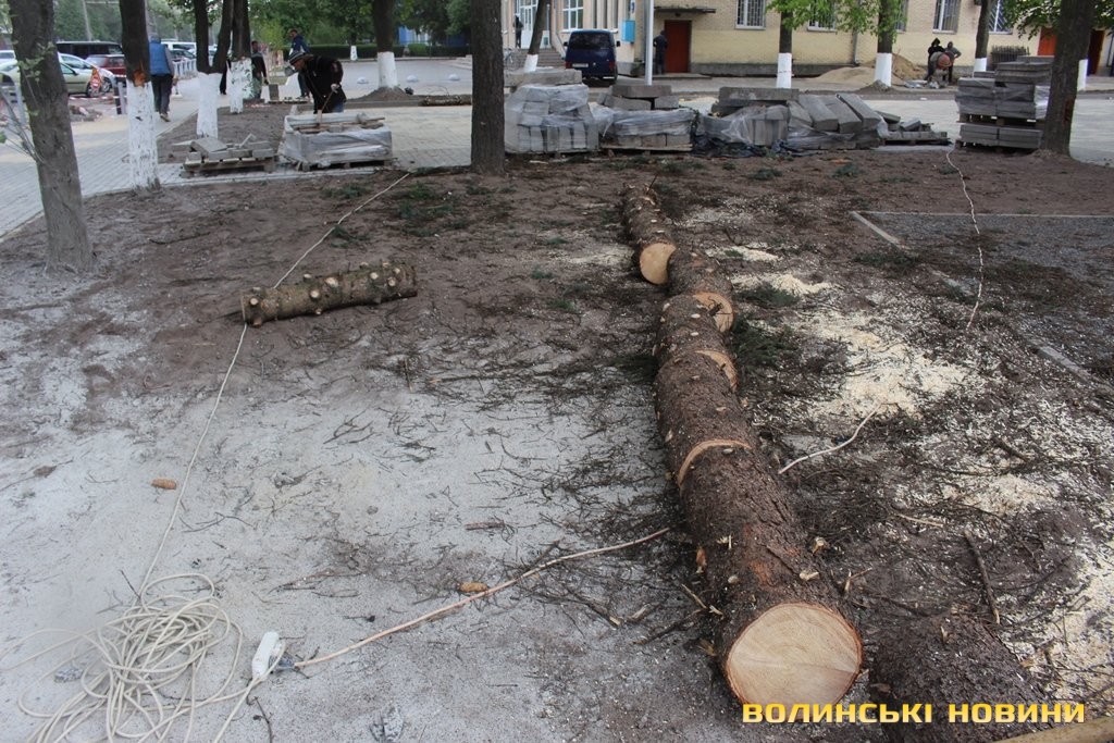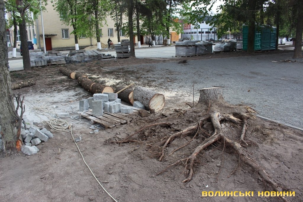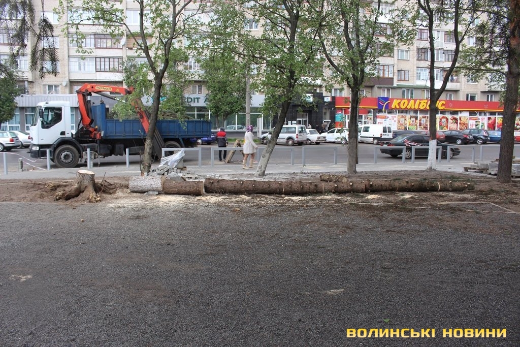 «Вони знову нищать зелену зону. Ці дерева цілком здорові, вже не придумують відмовки, що хворі, а просто беруть їх і зносять. Лишилося ще два дерева поряд, вочевидь, і їх планують звалити, адже дерева не облагороджені. Якби їх хотіли лишити, то обсипали б землею та обклали б навколо бруківкою. А так, їх теж хочуть підкопати та з допомогою техніки повалити», - розповіла лучанка Інна.