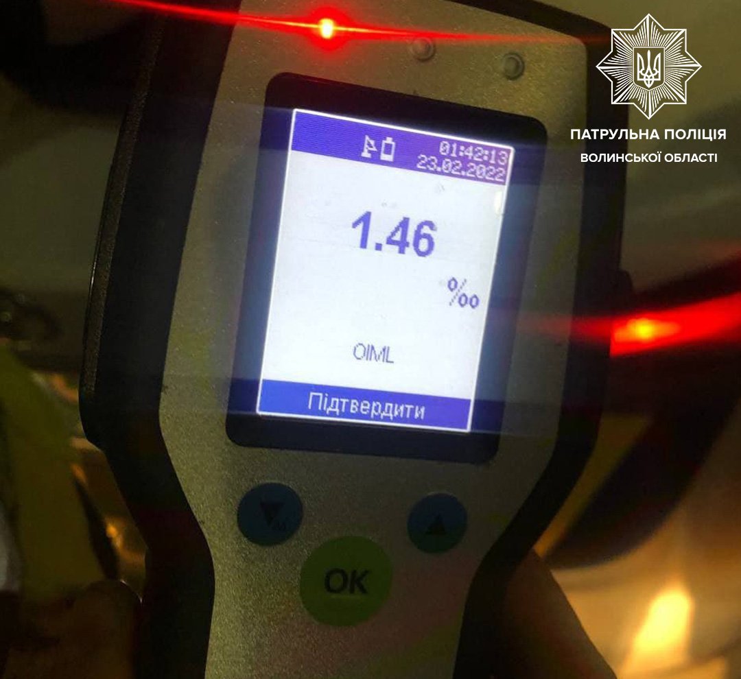 Керманич пройшов огляд на визначення стану алкогольного сп’яніння на місці події. Результат – 1, 46 проміле, що в 7 разів перевищує допустиму норму.