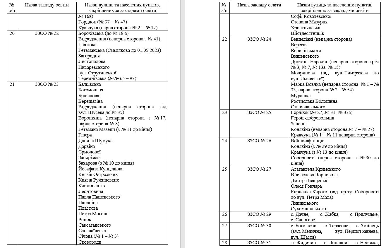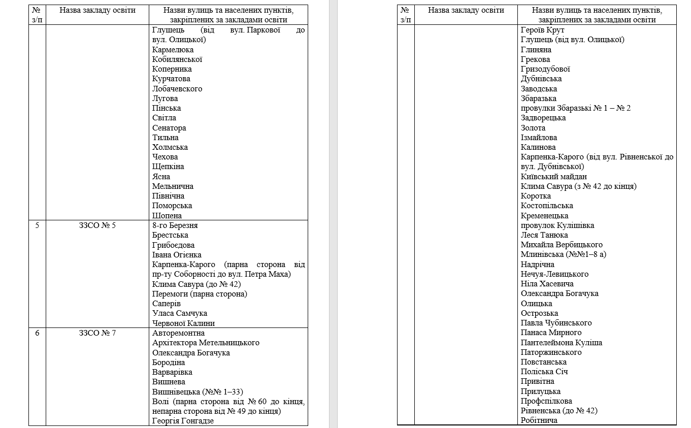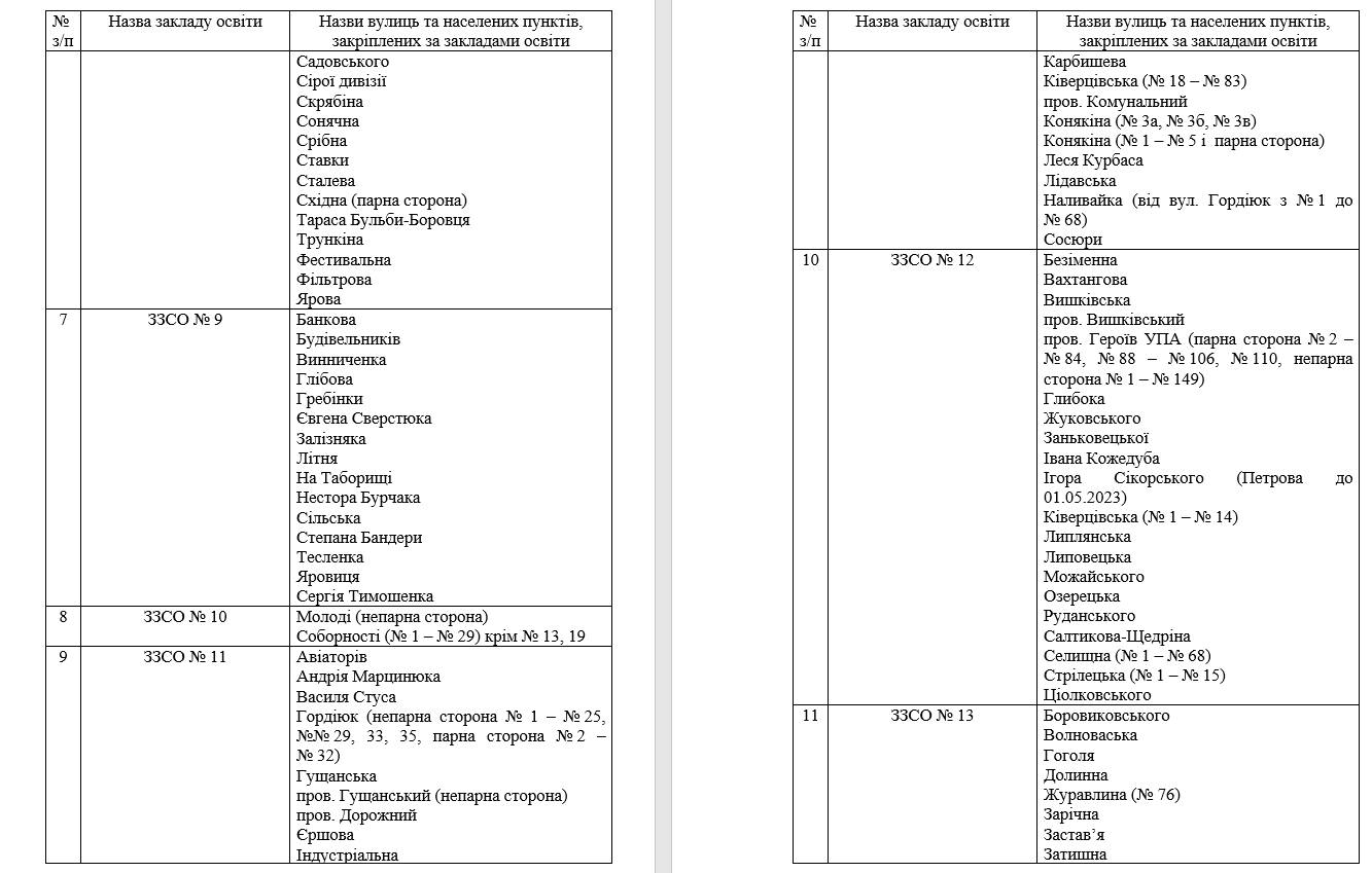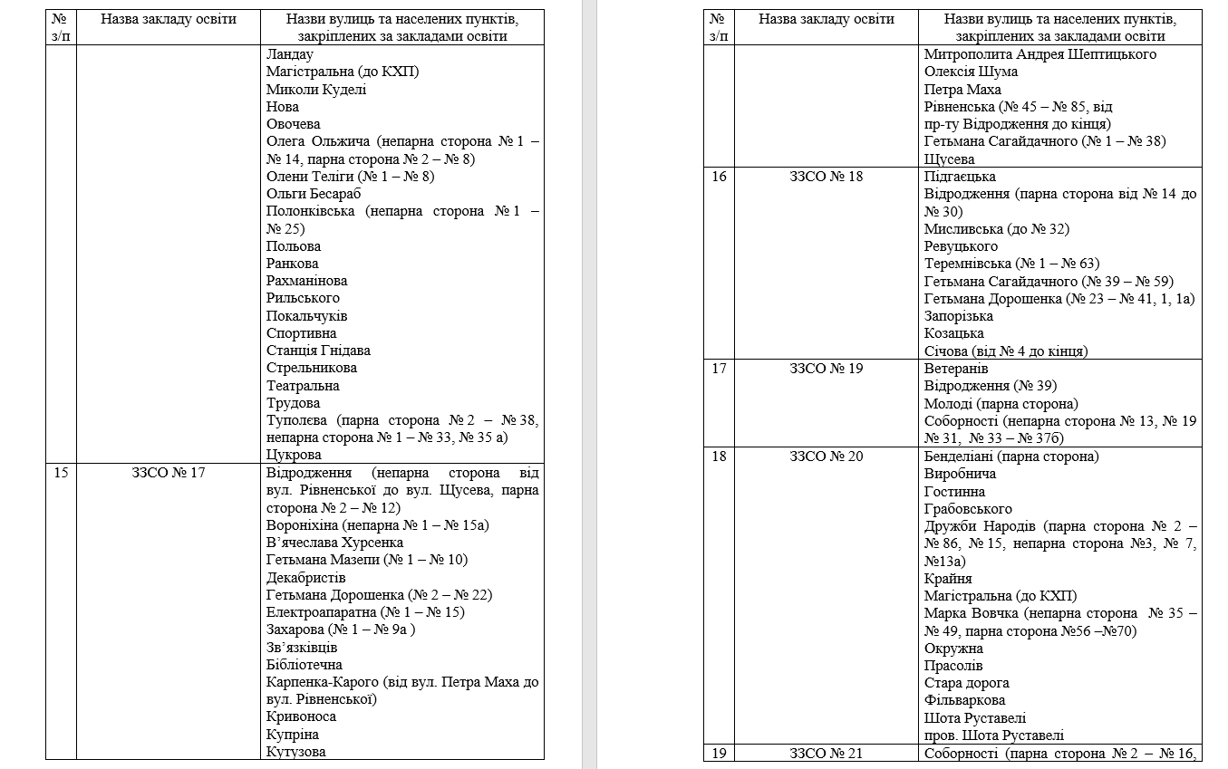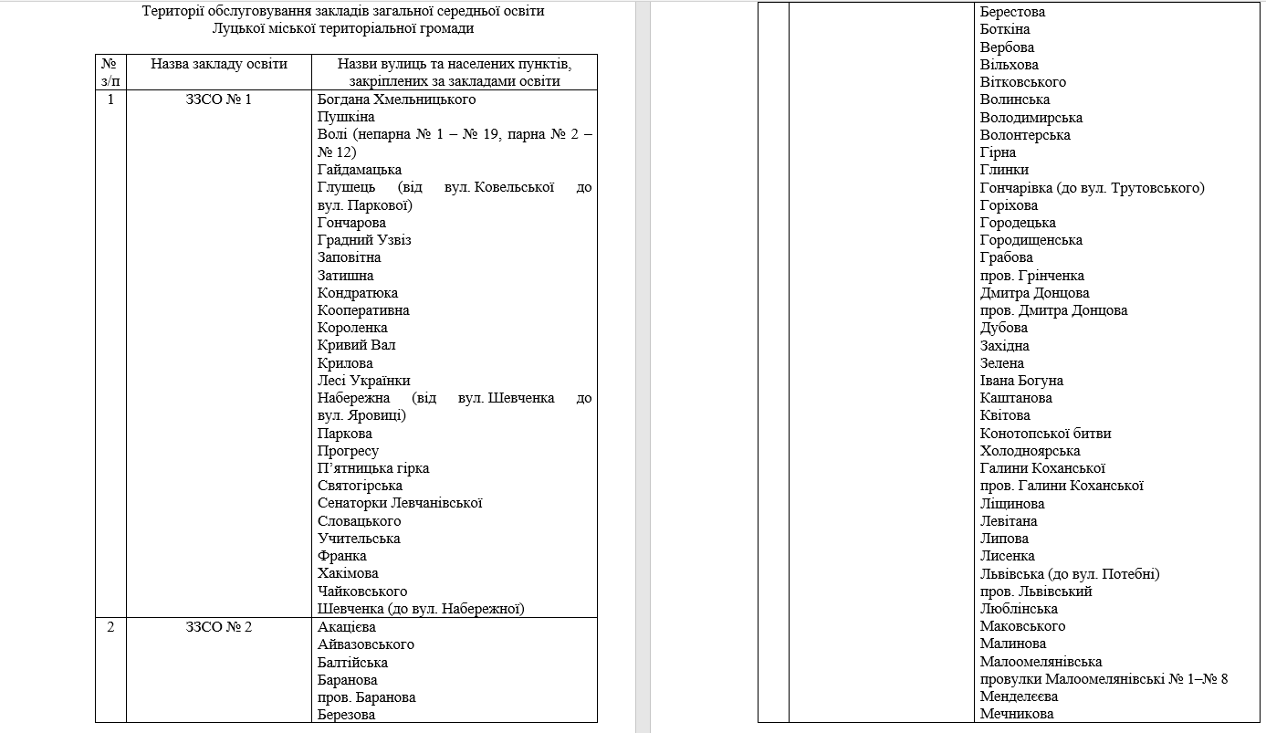 Території обслуговування за закладами загальної середньої освіти Луцької міської територіальної громади закріпили таким чином:Олександр ЗЕЛІНСЬКИЙ