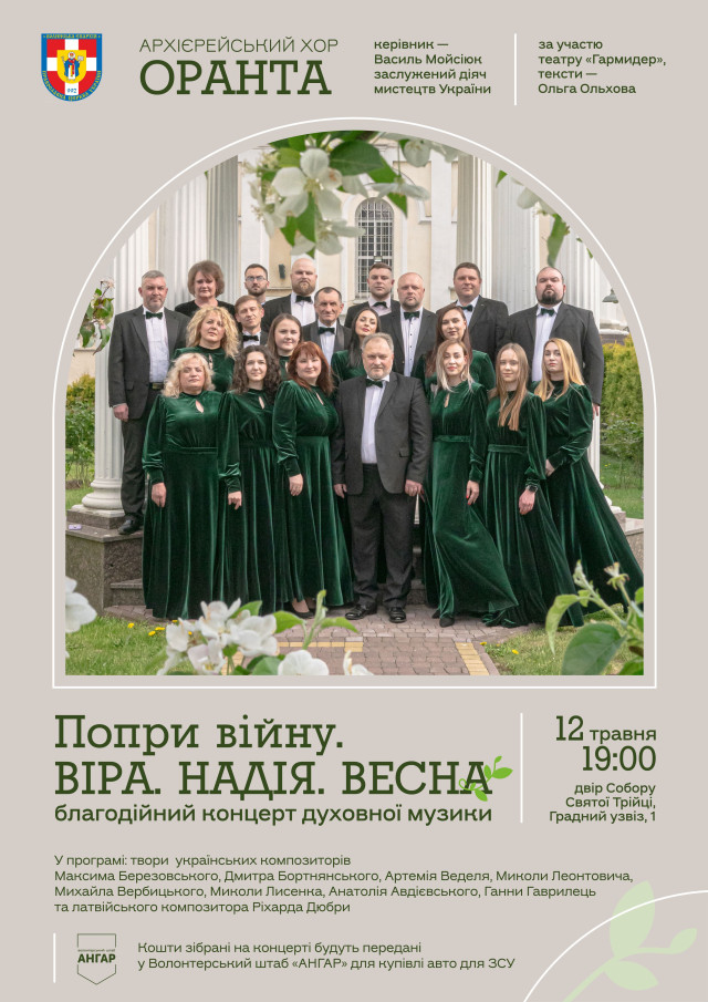 Архієрейський хор «ОРАНТА» та Волинська єпархія Православної церкви України запрошують на благодійний концерт духовної музики «Попри війну. Віра. Надія. Весна».