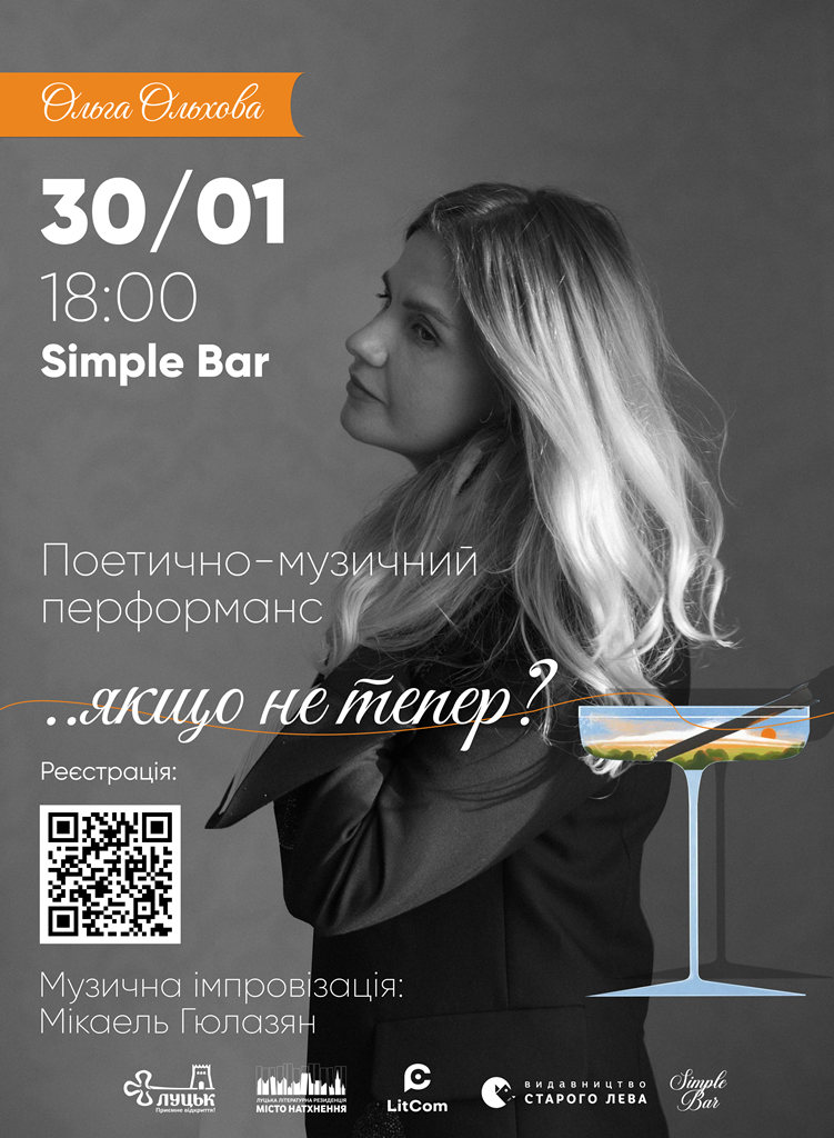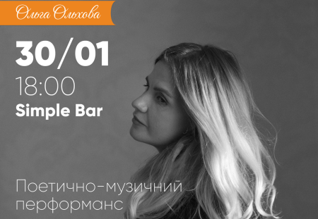 Поетично-музичний перформенс Ольги Ольхової за участі Мікаеля Гюлазяна відбудеться у четвер, 30 січня, о 18:00 у Simple Bar (проспект Волі, 9).