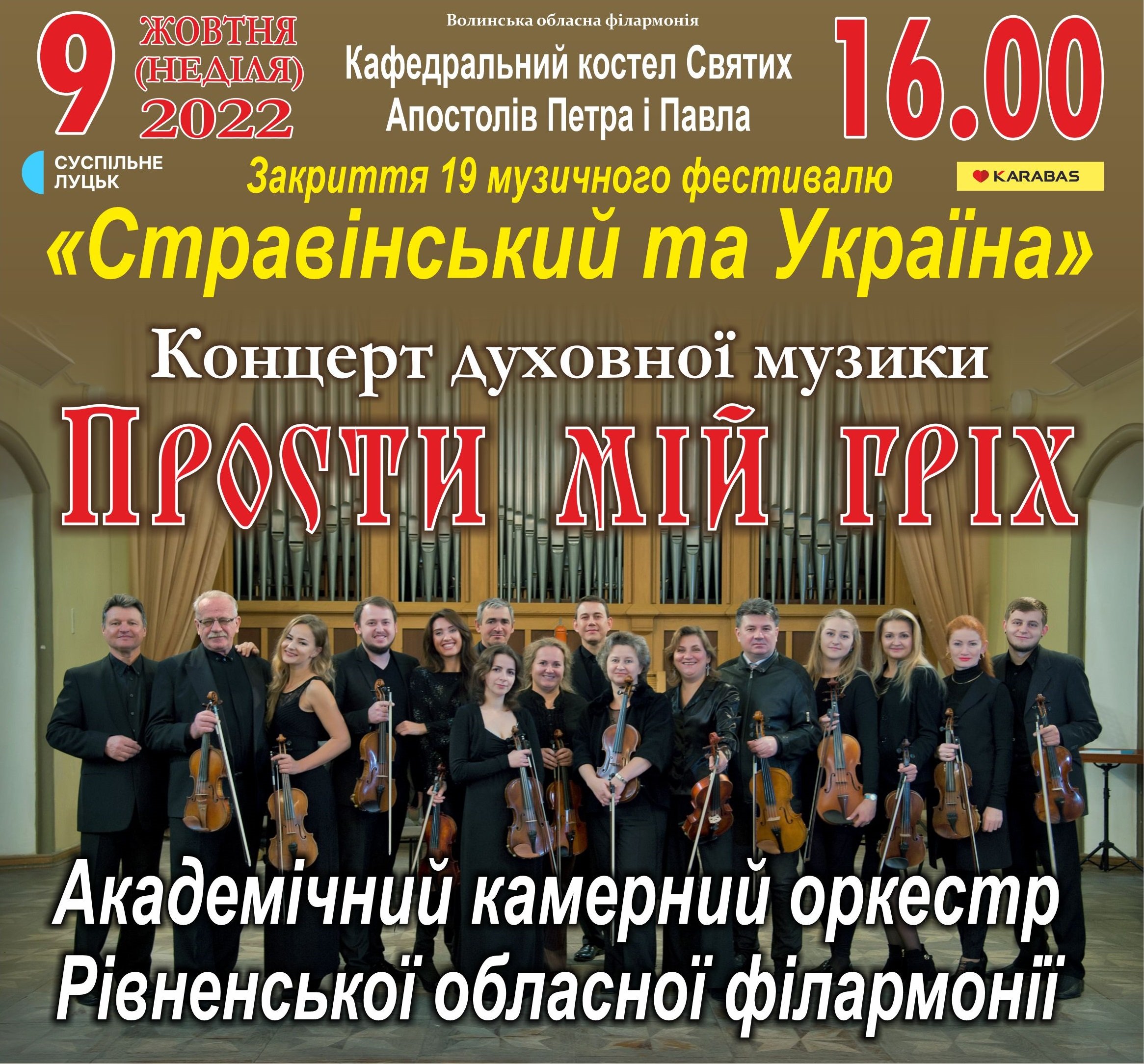 Академічний камерний оркестр Рівненської обласної філармонії представить концертну програму духовної музики «Прости мій гріх».