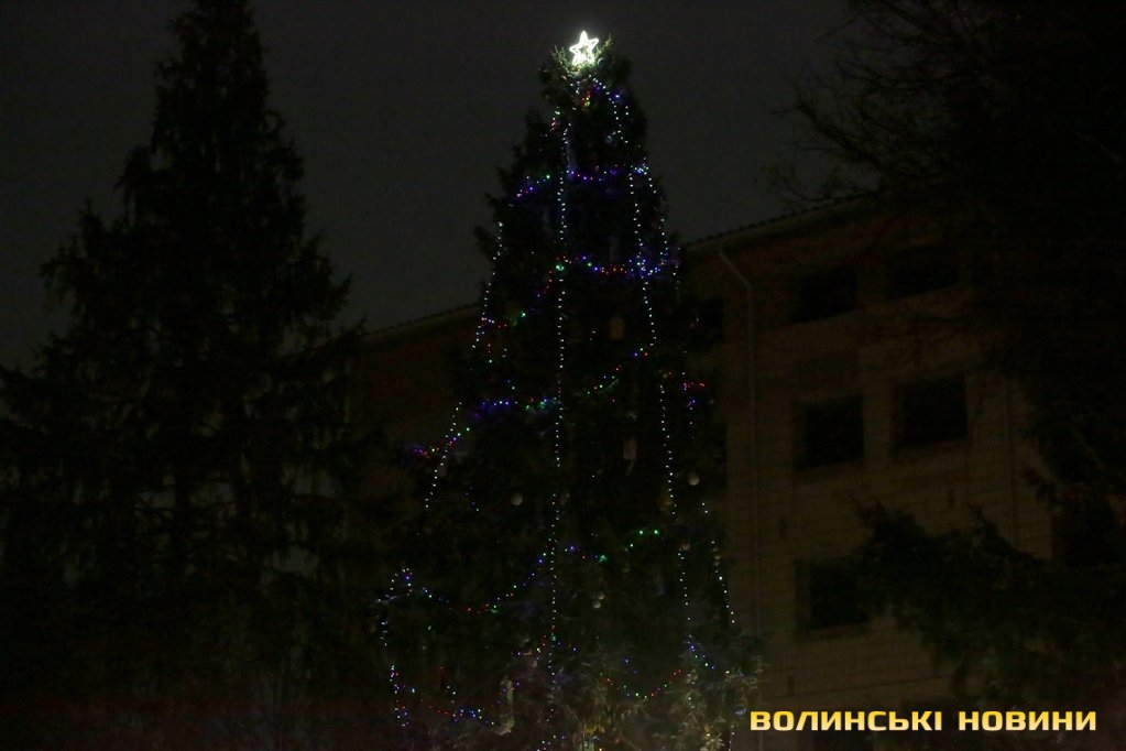 В обласному центрі Волині засвітили ще одну новорічну красуню. Тепер, окрім головного ялинкового тріо на Театральному майдані, сяятиме і ялинка в мікрорайоні Вишків.