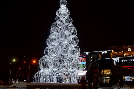 Ялинку із білосніжних куль засвітили на День Святого Миколая біля розважального центру «Промінь» в обласному центрі Волині.