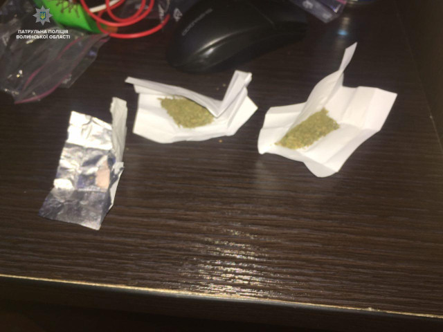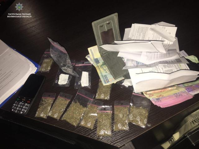 При перевірці у нього знайшли пакунки з зеленою речовиною рослинного походження, схожою на канабіс, та пакунок з білою порошкоподібною речовиною.