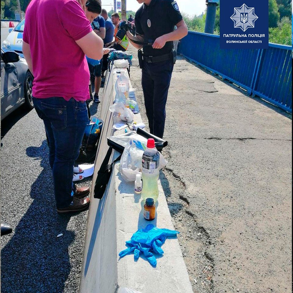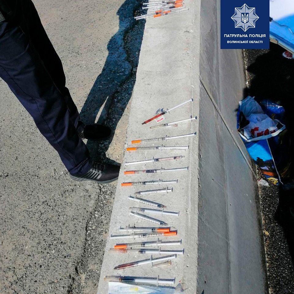 Вказаний транспортний засіб патрульні за допомогою працівників і техніки Укравтодору заблокували на вулиці Ковельській. За кермом перебував 31-річний чоловік, у кишені якого знайшли два шприци з рідиною білого кольору, схожою на наркотичну.