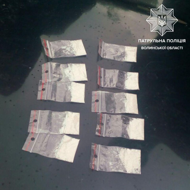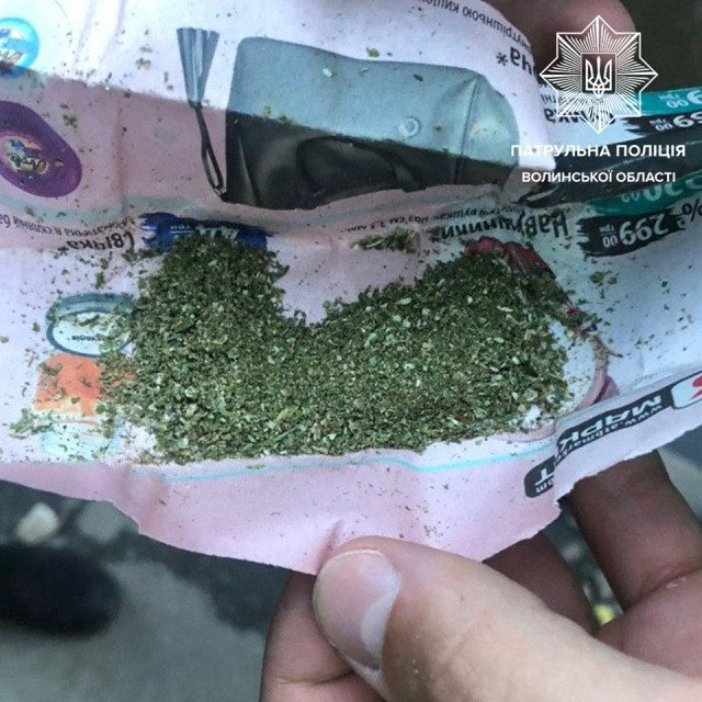 Під час спілкування інспектори помітили у водія ознаки наркотичного сп’яніння. Надалі під час поверхневої перевірки відповідно до статті 34 Закону України «Про Національну поліцію» виявили два згортки фольги всередині з порошкоподібною речовиною, білого кольору, зовні схожу на наркотичну та предмет зовні схожий на пістолет.