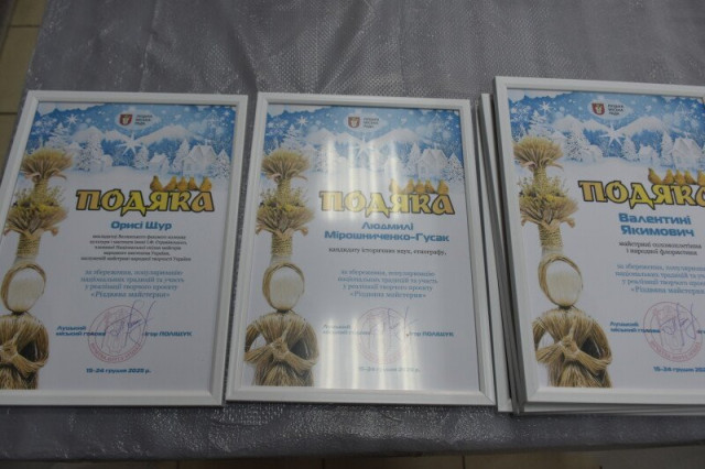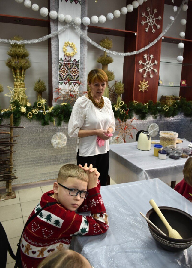 Ірина Чебелюк вручила подяки Луцької міської ради майстрам народної творчості та разом з дітьми долучилася до приготування куті. Від майстрині-господині Людмили Мірошниченко-Гусак присутні почули розповідь про традиції святкування Різдва, символічне значення куті та її складників, які означають благополуччя, єдність і пам’ять про наших предків.