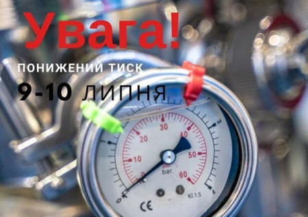 У Луцьку 9 липня з 23:30 до 06:00 10 липня продовж ночі буде понижений тиск у водопровідній мережі в частині міста.