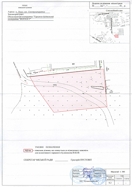 Керівник управління земельних ресурсів Сергій Шабала зазначив, що гаражний кооператив зареєстрований, а її членами є учасники бойових дій, ветерани АТО/ООС та Афганістану.