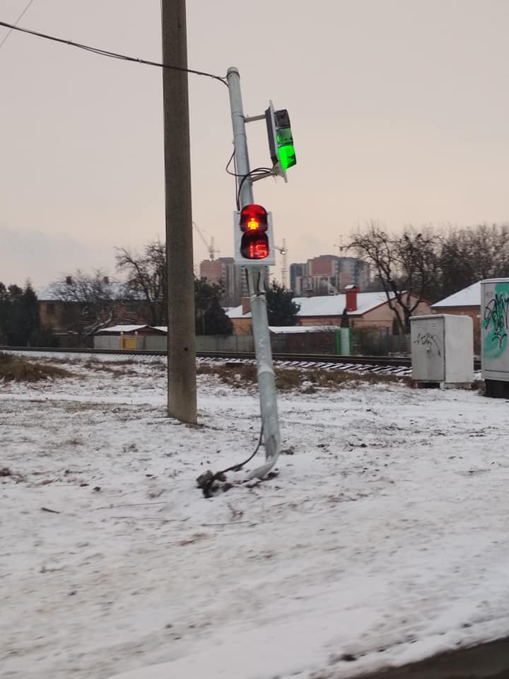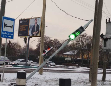 Фото похиленого регулятора руху 1 грудня опублікував у Фейсбуці Радим Романюк.