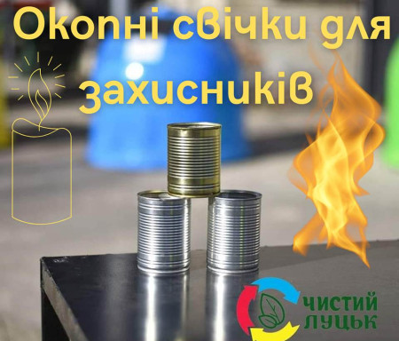 «Потреба в окопних свічках для наших воїнів постійно зростає. До нас звернулися безпосередньо самі військові, також постійно просять матеріали для виготовлення свічок і волонтери. Тому, любі відвідувачі центру управління відходами «Чистий Луцьк», як будете привозити нам побутове сміття, не забувайте про бляшанки! Також актуальні потреби на віск, парафін, картон, одяг. А скло, папір, побутову техніку, батарейки та лампи ми приймаємо завжди!» – йдеться в дописі.