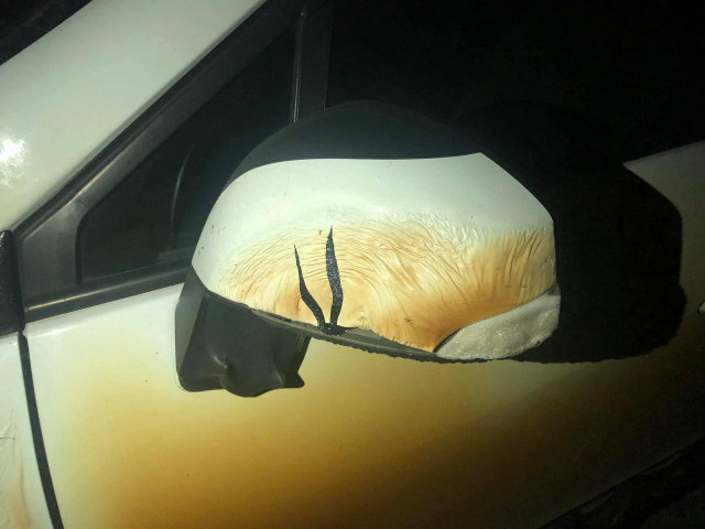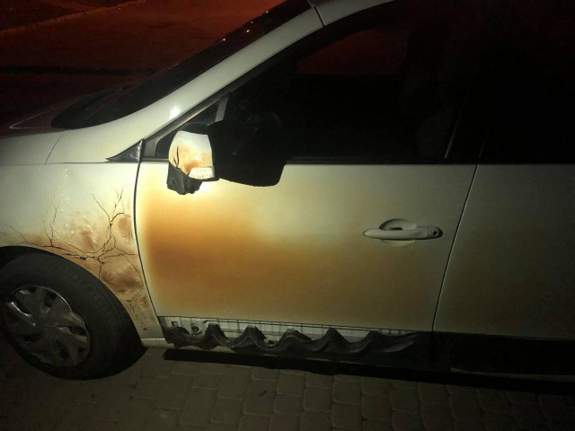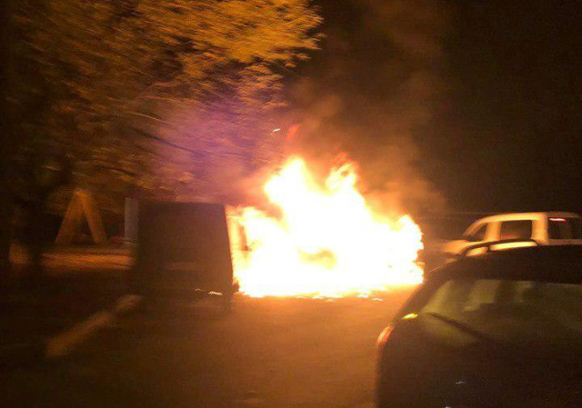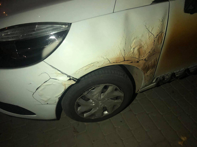Підпалили Тігуан а показуєте на фото сценік, який стояв ПОРЯД і постраждав коли горів тігуан....