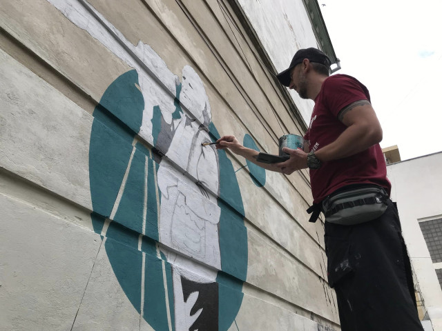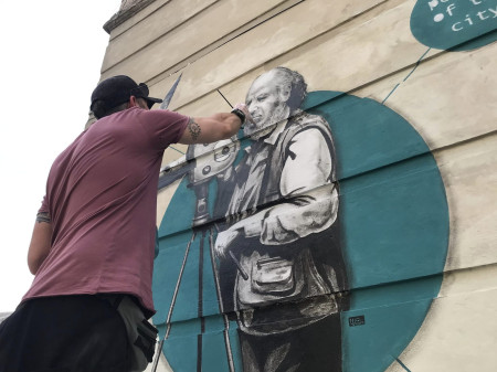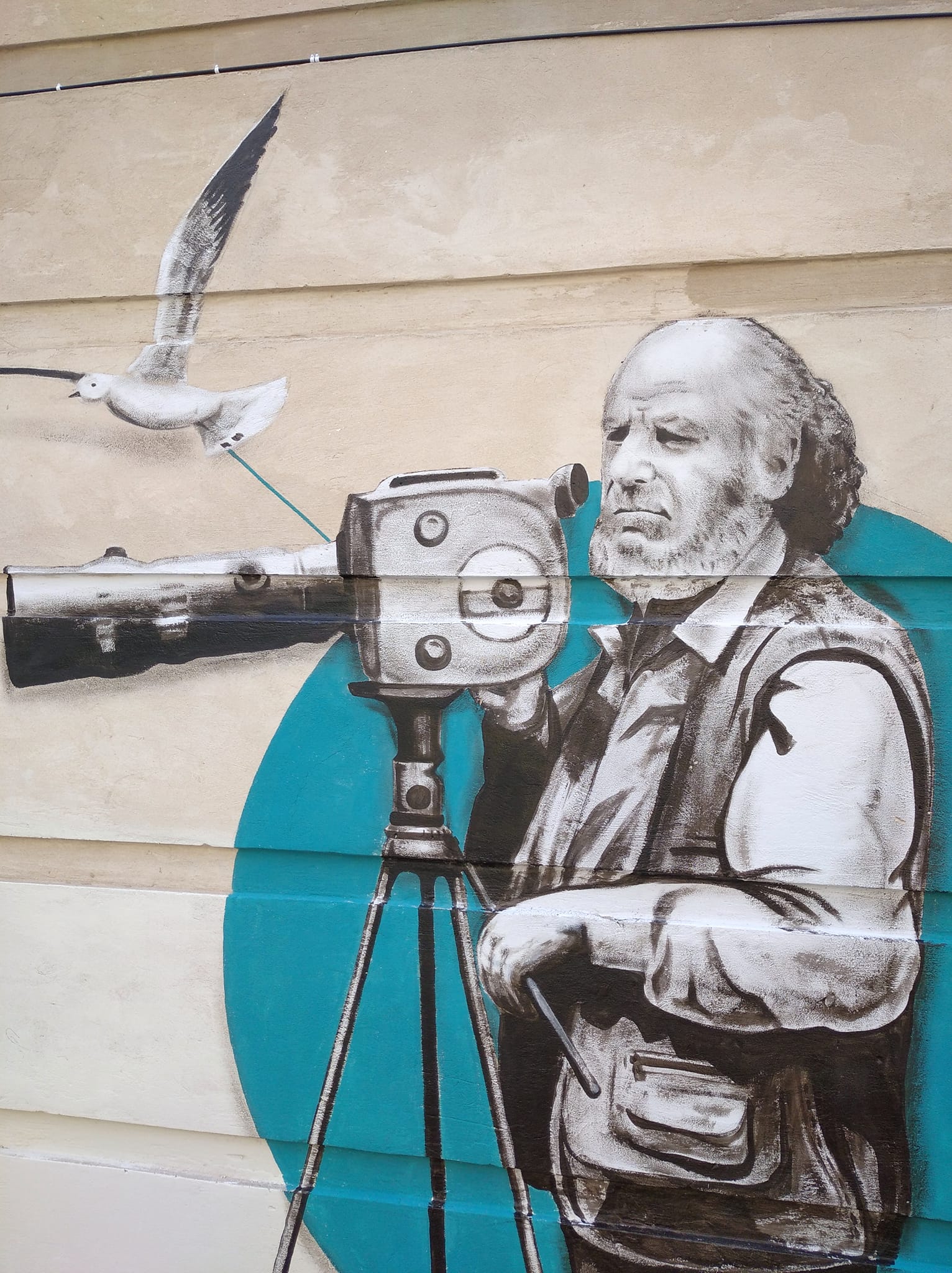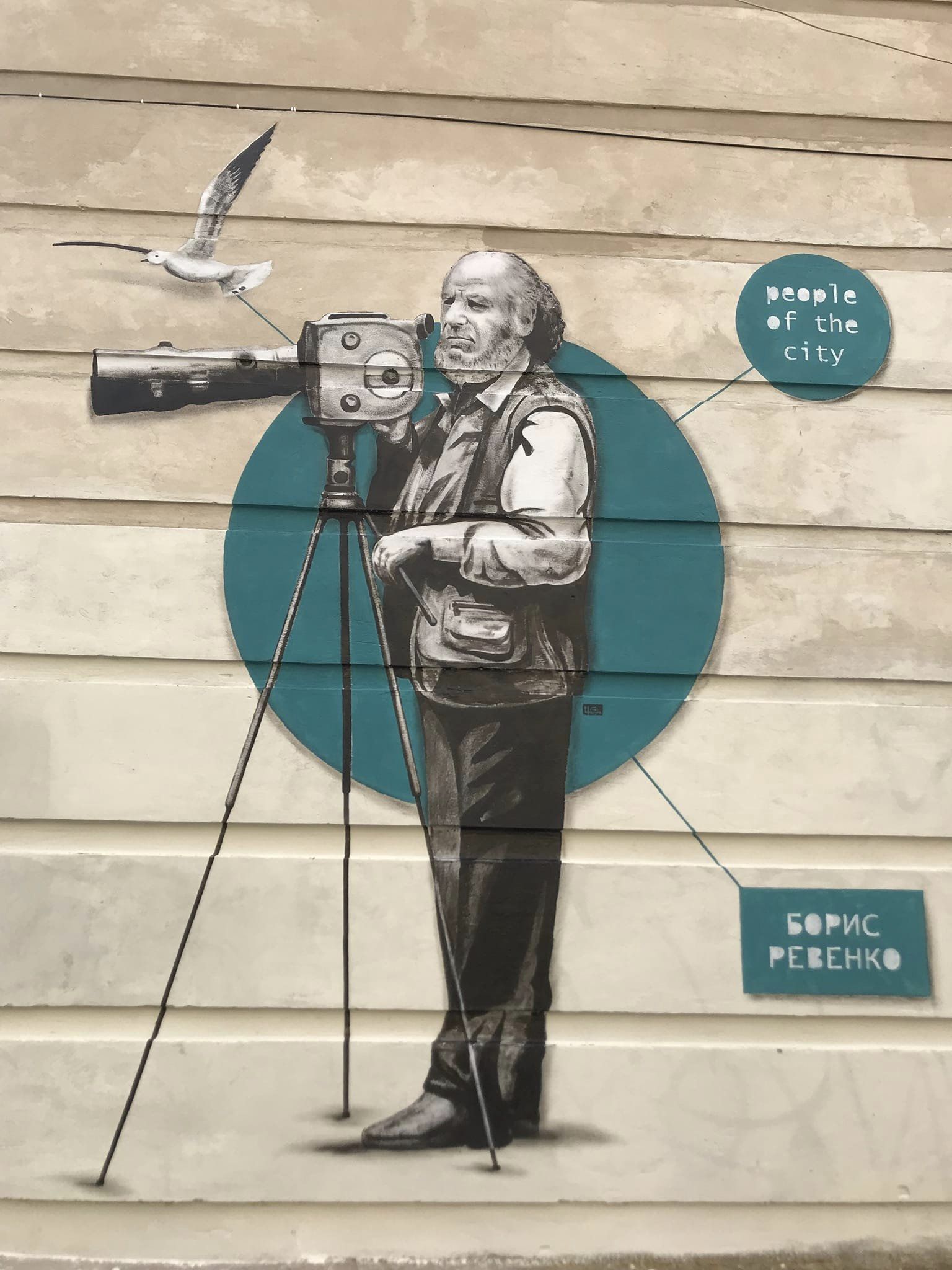 Луцький художник Юрій Чайка намалював мурал із відомим кінорежисером, оператором, колишнім керівником аматорської кіностудії «Волинь» Борисом Ревенком.