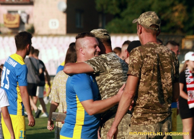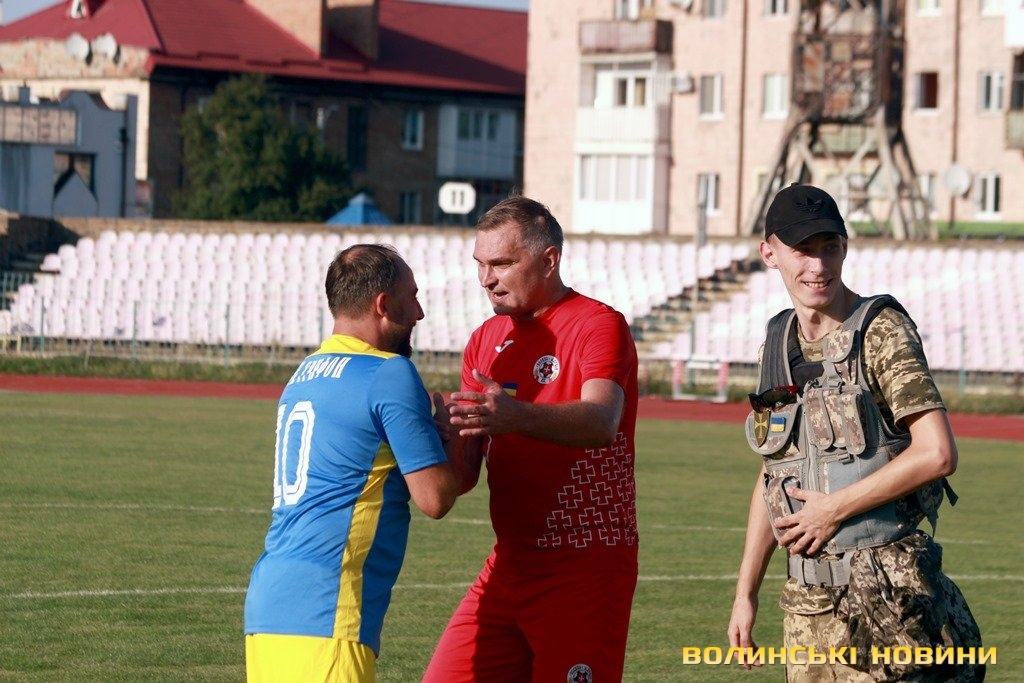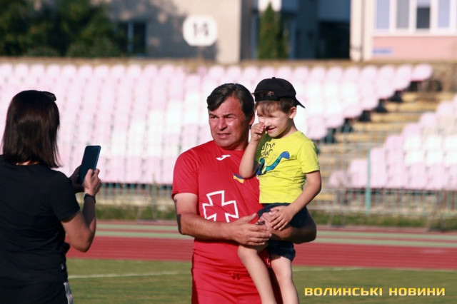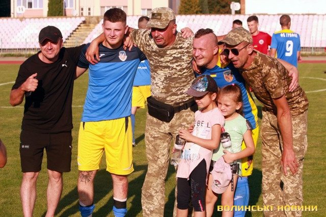 У Луцьку зірки футбольного клубу «Волинь» зіграли благодійний матч із командою ФК «Грифон», до складу якої входять військовослужбоці. Під час спортивного дійства збирали кошти на ЗСУ.