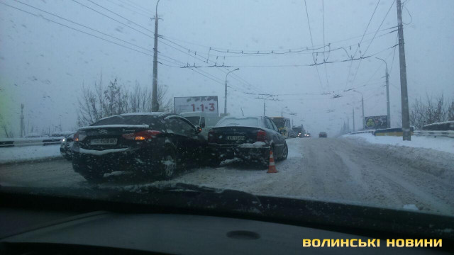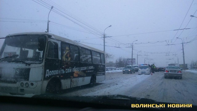 У Луцьку зіткнулися два авто і маршрутка. Фото