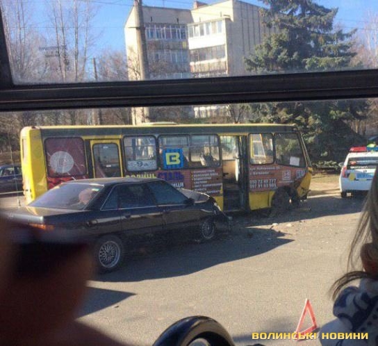 У Луцьку трапилась аварія за участі маршрутного таксі та легковика.