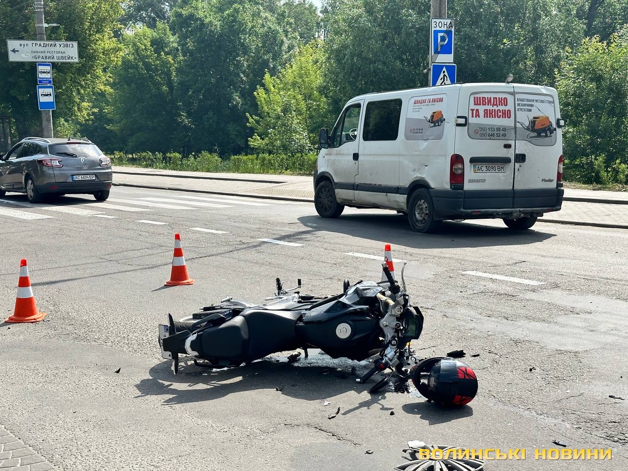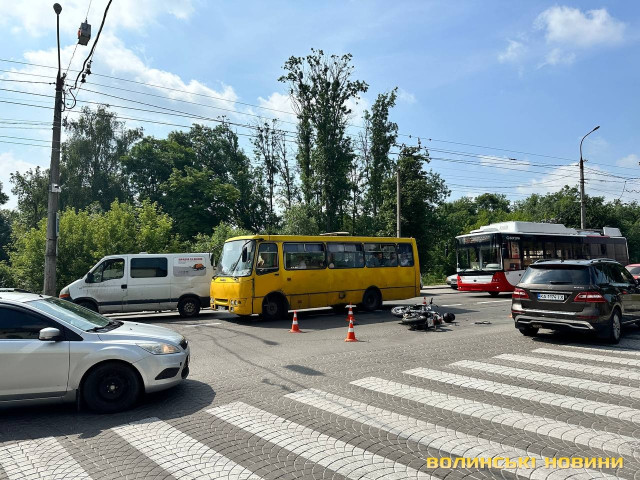 У Луцьку на вулиці Глушець зіткнулися мікроавтобус і мотоцикл.