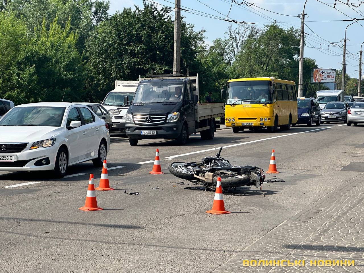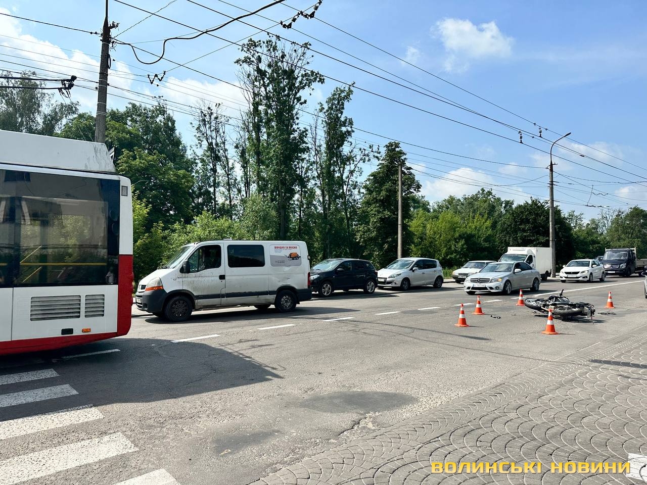 У Луцьку зіткнулися мікроавтобус та мотоцикл, утворився затор