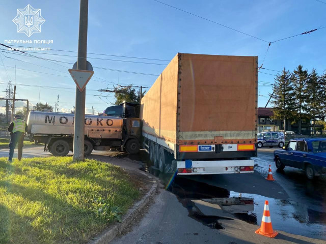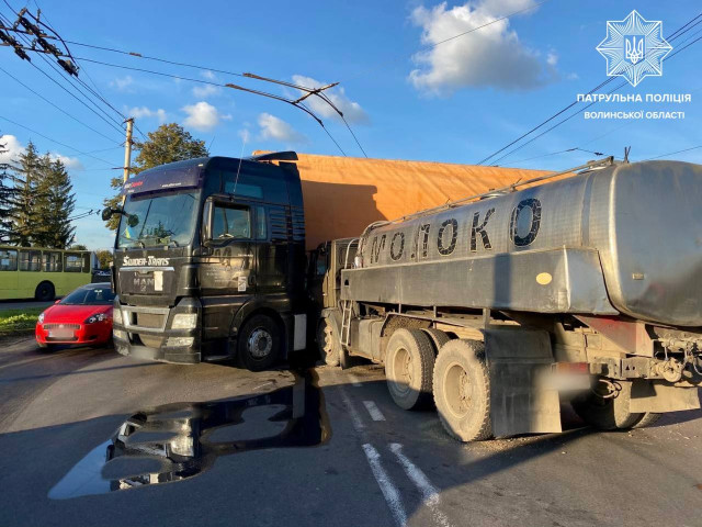 У Луцьку зіткнулися молоковоз та фура. Відео