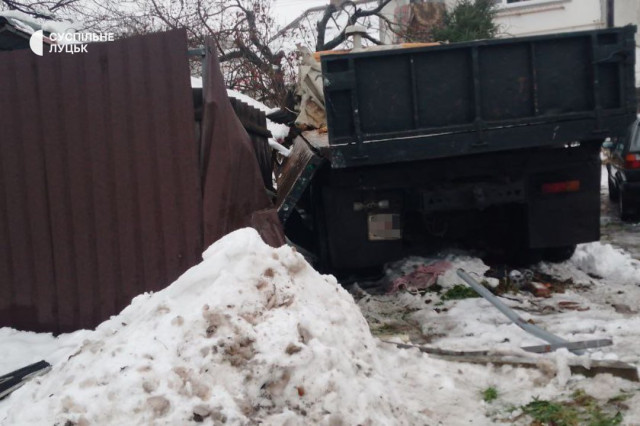 У Луцьку зіткнулися вантажівки: одна в'їхала у паркан. Фото