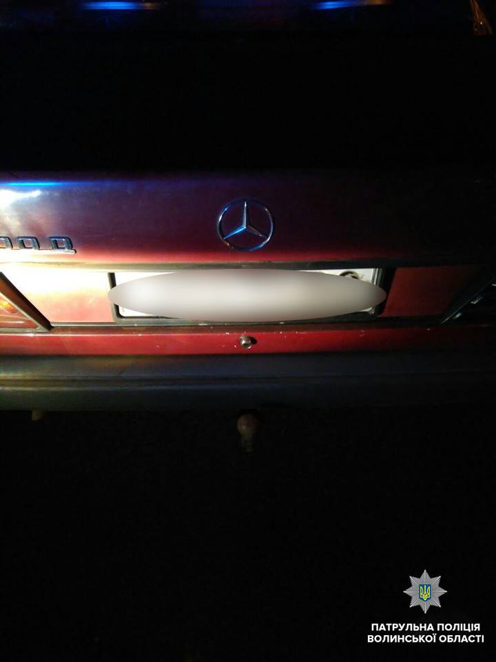 Сьогодні, близько 05:30 години, екіпаж патрульних поліцейських у Луцьку зупинив Merсedes-Benz 200 за порушення правил дорожнього руху, повідомили у патрульній поліції Волині.
