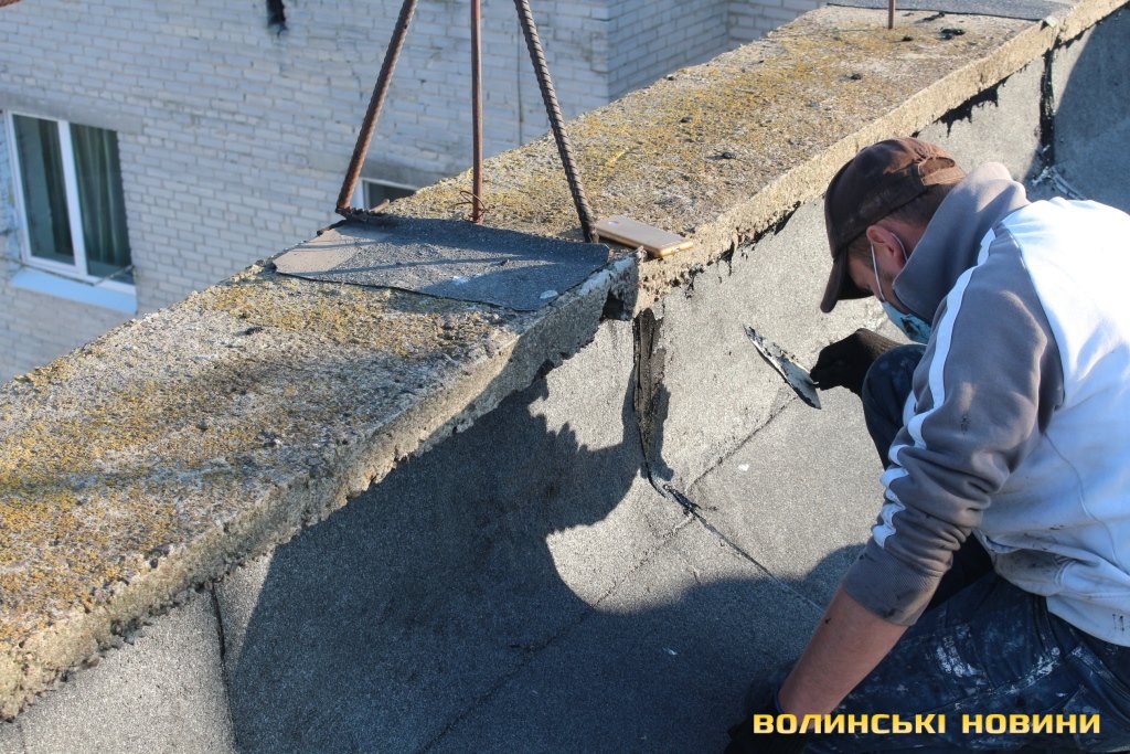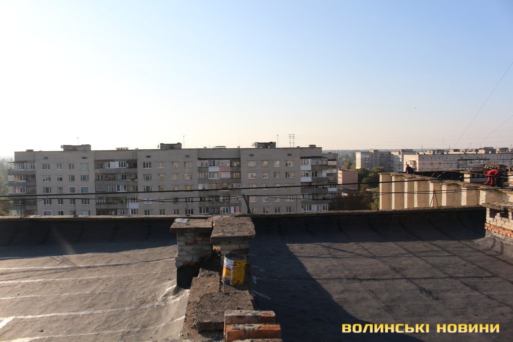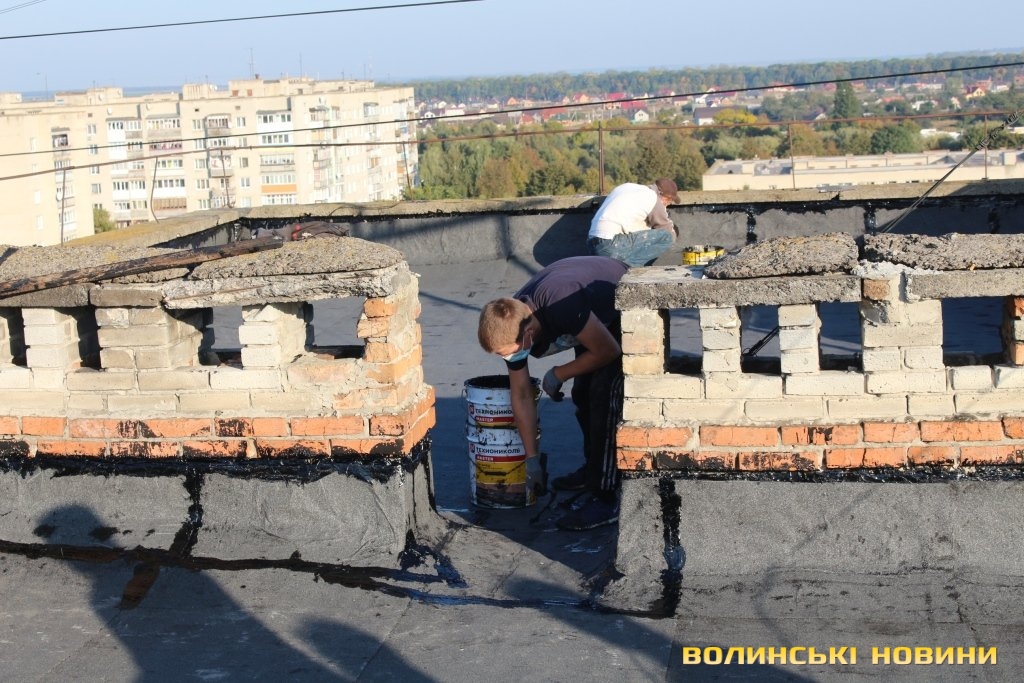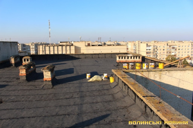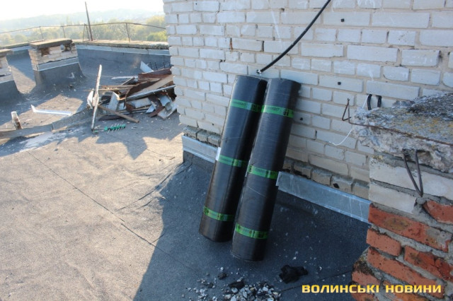 Директор департаменту ЖКГ міськради Юрій Крась розповів, що тут облаштували пласку покрівлю з єврорубероїду, покладеного у два шари. Шви оброблюють спеціальною мастикою, що збільшує термін експлуатації покрівлі. Вартість робіт становить 420 тисяч гривень.
