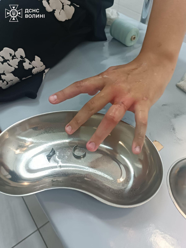 Ввечері 18 липня до надзвичайників надійшло повідомлення від чергового лікаря, про те, що у травматологічному пункті м. Луцьк, перебуває хлопчина 12 років, який одягнув на палець кільце, яке не можна самостійно зняти.