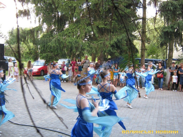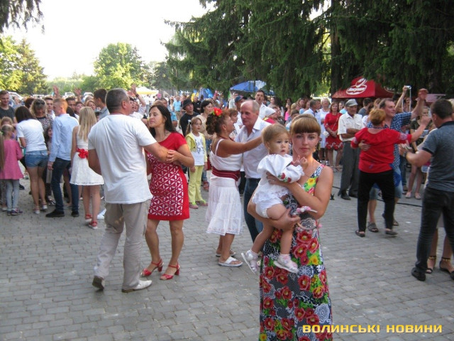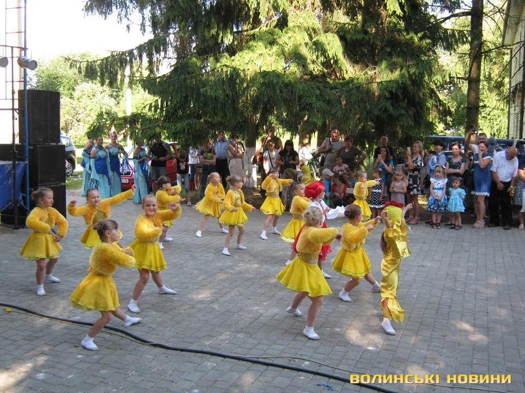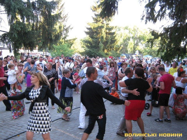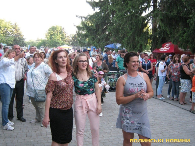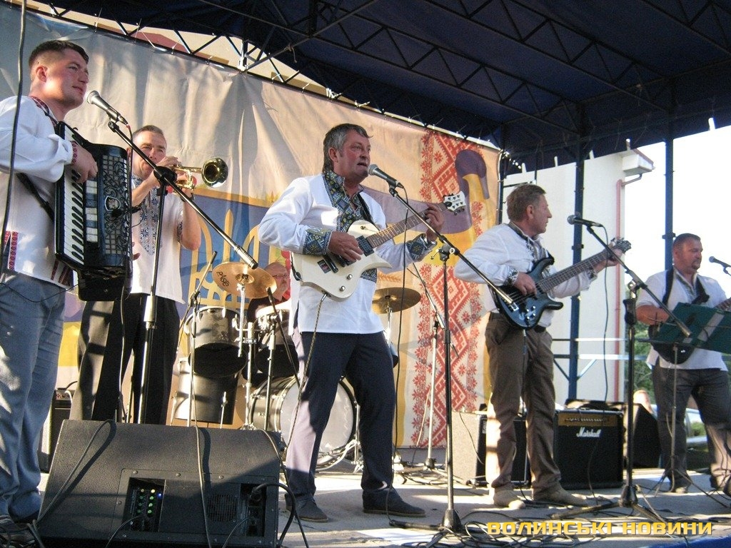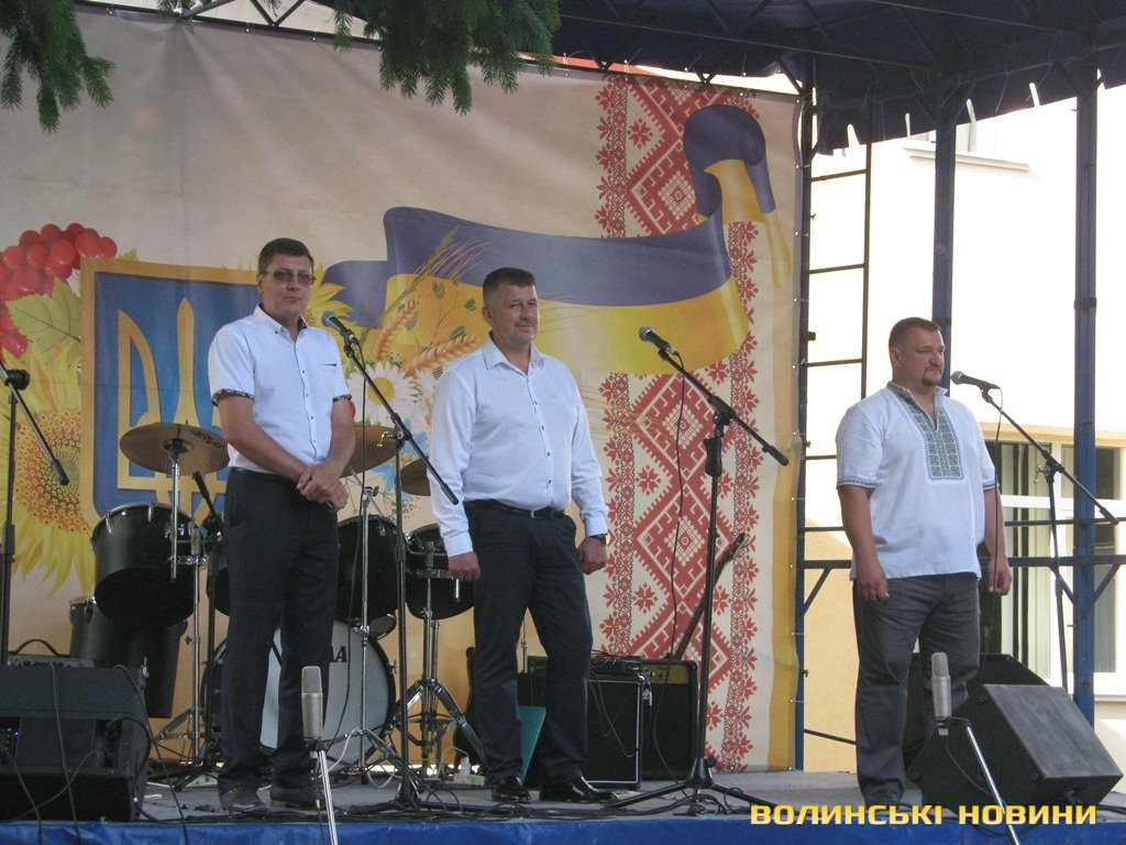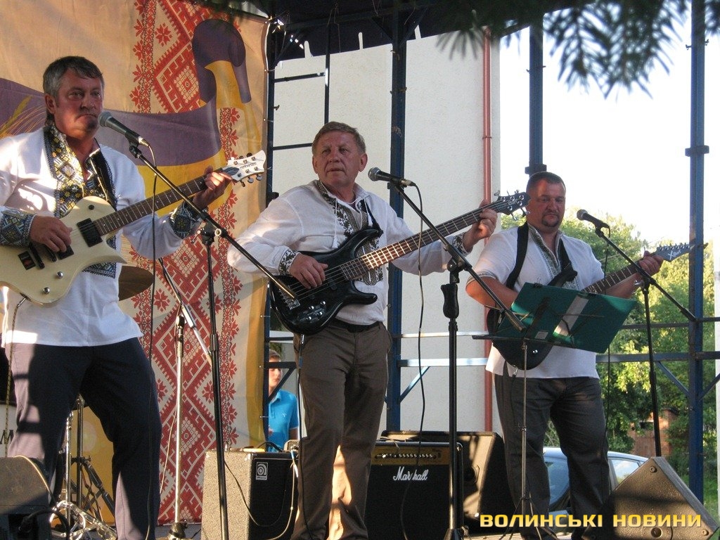 До слова, зі сцени вони мовили не тільки вітальні слова, а й заграли та заспівали у складі вже популярного в районі вокально-інструментального ансамблю, викликавши ще більш піднесений настрій у публіки. Вона тільки тоді пішла в танок, попередньо «підігрівшись» частуваннями і виступами місцевих аматорів сцени, дорослих і дитячих колективів – гостей із Луцька та Рожища.