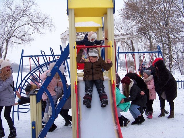 Місцевий священик освятив майданчик. Діти читали вірші для Святого Миколая, який того дня завітав на свято, співали, розважалися з аніматорами.