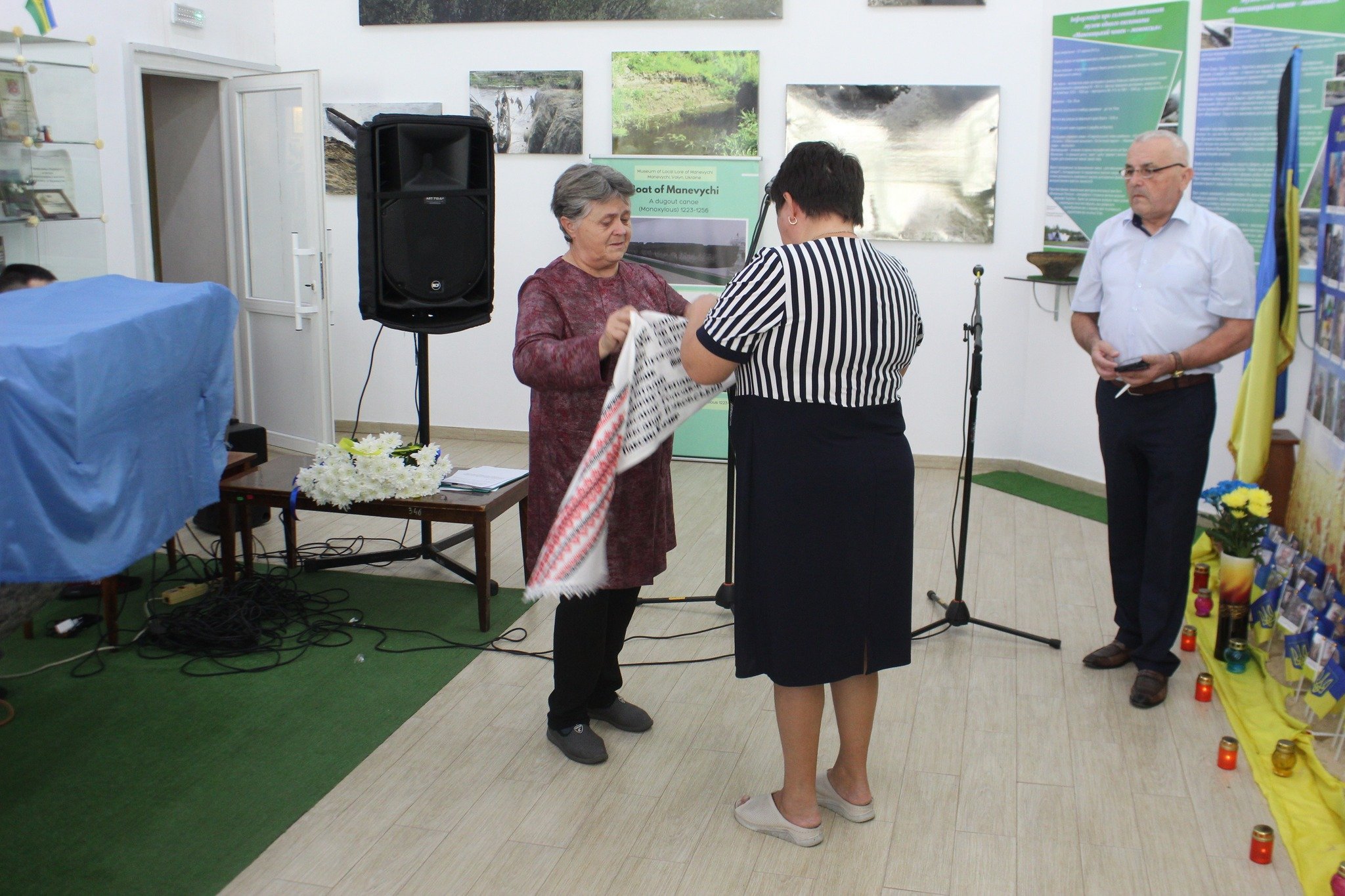 На відкриття виставки було запрошено представників місцевої влади, військовослужбовців, молодь та громадськість. Присутні поіменно вшанували загиблих земляків хвилиною мовчання, віддаючи шану їхньому подвигу в боротьбі за свободу.Одним із найбільш емоційних моментів заходу стало передання «Рушника Пам’яті» – особливого символу, на якому матері та дружини загиблих захисників вишивали імена своїх рідних. Цей рушник є живою пам'яттю про тих, хто віддав життя за майбутнє своєї країни, і стане важливою частиною історичної спадщини Маневиччини.Читати ще: Військовий 3-ї ОШБр передав волинському музею артефакти російсько-української війни