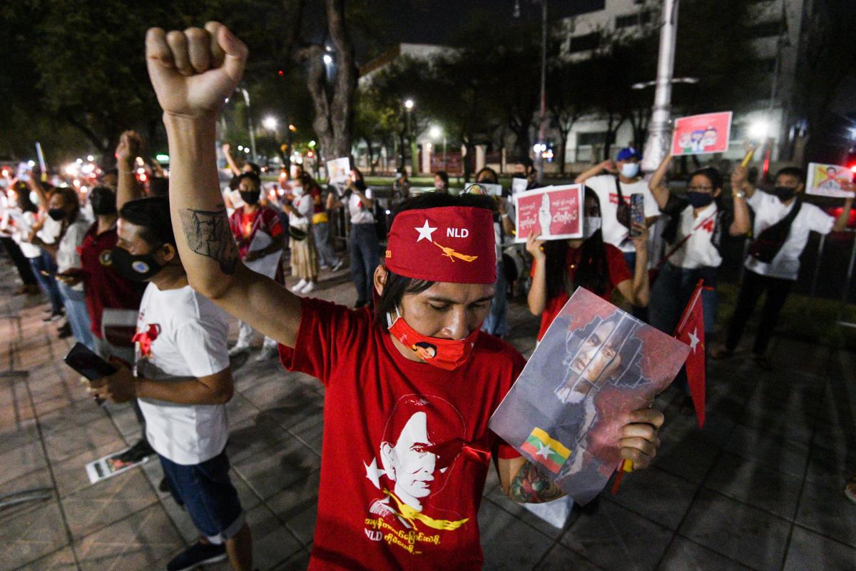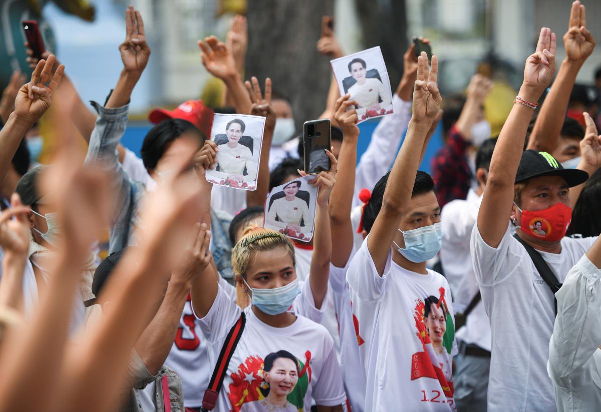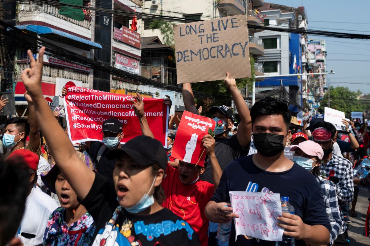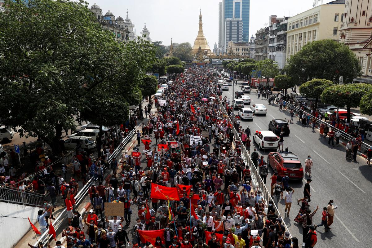 Чимало людей уже другий день поспіль виходять на вулиці найбільшого міста країни Янгона. Багато з учасників мітингів одягнуті у червоні сорочки, а у руках вони тримають червоні прапори та повітряні кулі – кольору «Партії національної ліги за демократію» (NLD), яку очолює Аун Сан Су Чжі, котра до перевороту була фактичною очільницею уряду.
