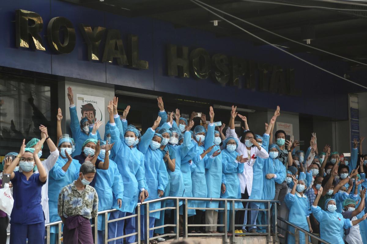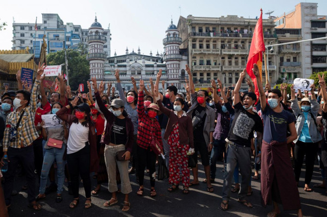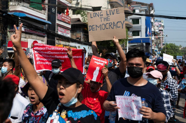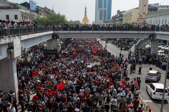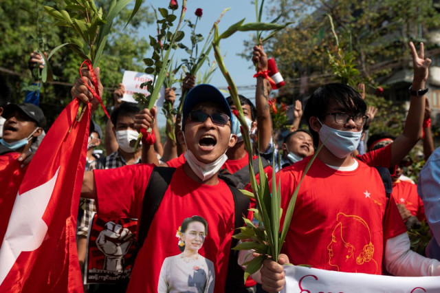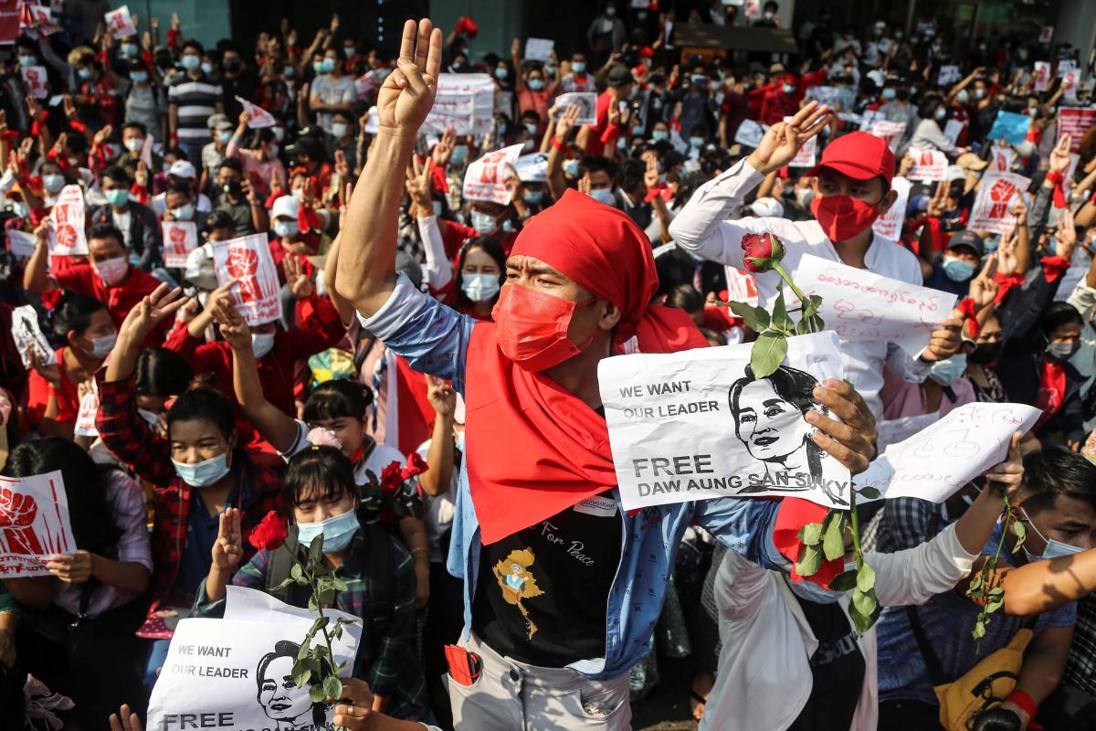 Чимало людей уже другий день поспіль виходять на вулиці найбільшого міста країни Янгона. Багато з учасників мітингів одягнуті у червоні сорочки, а у руках вони тримають червоні прапори та повітряні кулі – кольору «Партії національної ліги за демократію» (NLD), яку очолює Аун Сан Су Чжі, котра до перевороту була фактичною очільницею уряду.