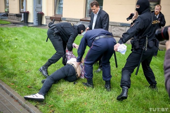 Білоруські правоохоронці затримали близько 10 осіб, після чого інші студенти розбіглися.Раніше виконувач обов’язків президента Білорусі Олександр Лукашенко натякнув, що студентів, які не вийдуть на навчання з 1 вересня, будуть забирати в армію.