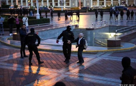 Як повідомляє Interfax-Україна з посиланням на портал tut.by, міліція розігнала учасників акції, частину людей заблокували в Червоному костьолі.