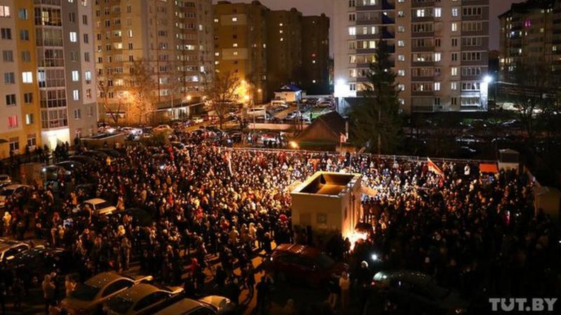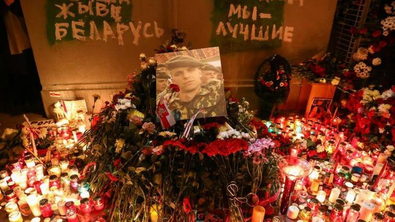 Після звістки про смерть Романа Бондаренка тисячі мешканців Мінська прийшли до «Площі змін», аби вшанувати його пам’ять, запалили свічки і поклали квіти на місці затримання, повідомляє ВВС України.