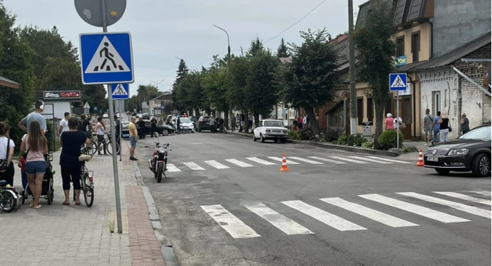У місті на Волині мотоцикліст збив жінку на переході. Момент аварії